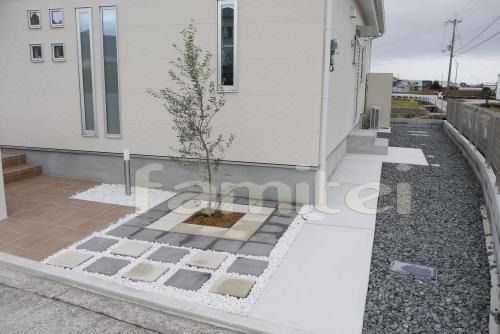 シンボルツリーの周りと飛び石の役割を果たしてますね