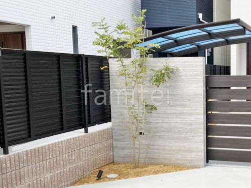 ●目隠しフェンス…YKKAP シンプレオ13F型 横ルーバー (本体色:カームブラック)