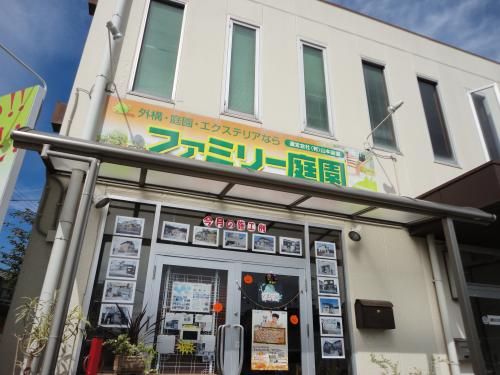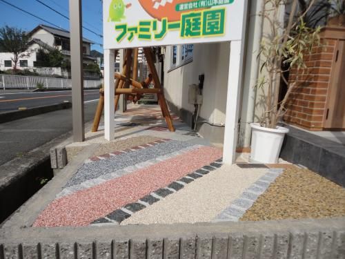 店舗横のスペースには、お客様のイメージが湧くように実際に外構工事で使う