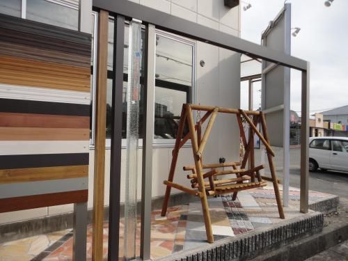 今、流行りのタイルデッキの雰囲気が感じれるように展示しています。