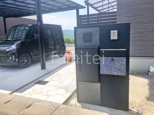 宅配ボックスを標準装備したFRP製機能門柱、本体2色、タイルは4パターンから選ぶことで
