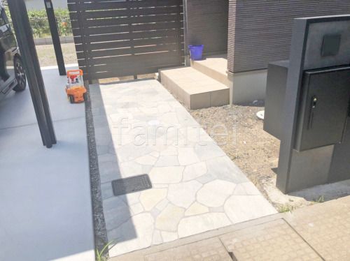 乱石貼りは、大小さまざまな大きさに割った乱形石を隙間なく並べた舗装面です