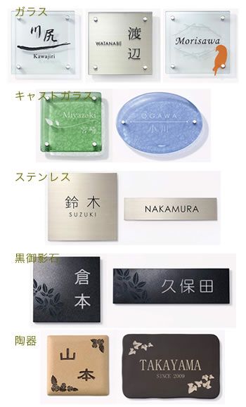 から、住まいを個性的に装う表札シリーズに、ガラスや石、陶器など素材の質感と美しさを活かしたデザインをラインナップし、様々な住宅スタイルに調和する商品体系が充実。