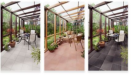 どれも同じテラスですが、床の面積が広いだけに、カラートーンを変えるだけで、印象はがらりと変わります。白は光を反射して明るく、広い印象に。ベージュはよりナチュラルでアウトドアとの一体感があります。黒は重厚でモダンな雰囲気を演出します。