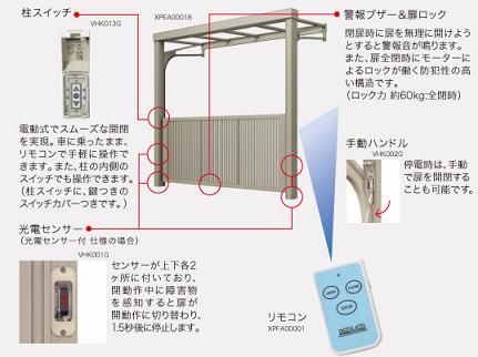 扉に車や人が挟まれた場合には、扉が少し戻り、閉動作を止めるシステムを装備しています。また、上部に障害物がある場合にも作動します