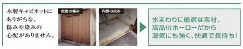 木製キャビネットにありがちな、傷みや染みの心配がありませんよ