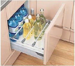 ボトルや瓶などをストックするのにキレイにキッチリ収納できます♪