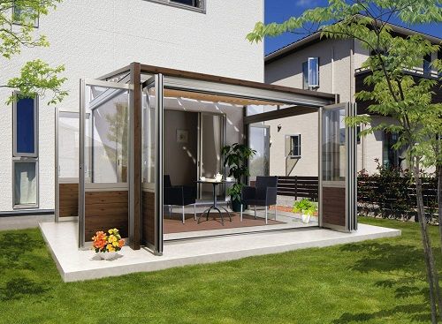 木調パネルで足元目隠し!おしゃれなガーデンルーム