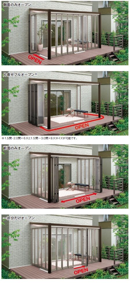 本日は扉のフルオープン可能が特徴の、タイルデッキ付きガーデンルーム