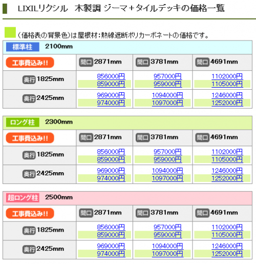 詳細はこちらのページへどうぞ→LIXILリクシル 木製調 ジーマ+タイルデッキ