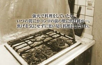 強火でお料理していたら、コンロ周りに焦げ跡ができていた・・