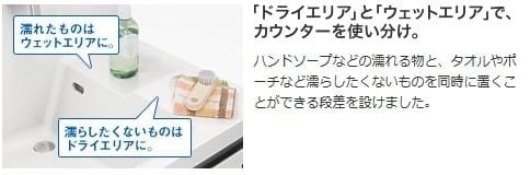 またドライエリアとウェットエリアでカウンターを使い分けできます♪