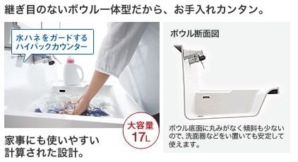 そしてなんといっても機能性を極めた新形状のボウル一体型カウンター