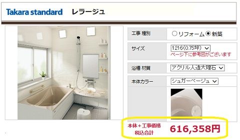 こちらのシステムバス「レラージュ」が工事費込みでこのお値段