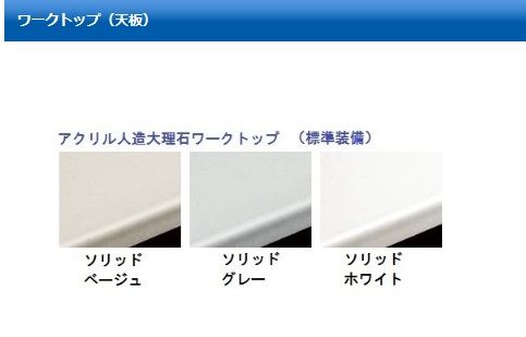 ワークトップはインテリア性の高いアクリル人造大理石トップ3色をご用意