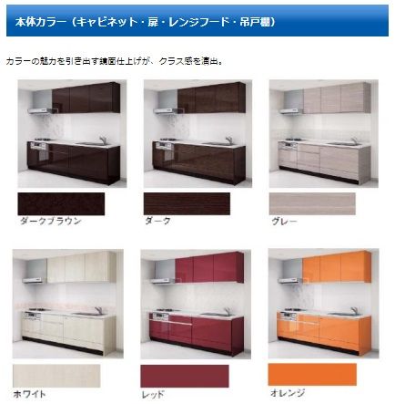 カラーは木目調カラーの他、オレンジやレッドなどキッチンを明るく彩る6色