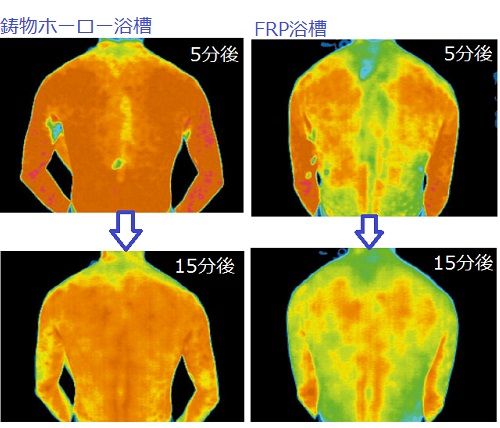 FRPの浴槽と温浴効果をサーモグラフィで比べた結果がコレ