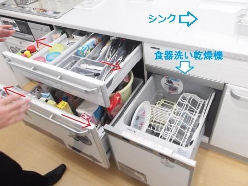 また食器洗乾燥機をシンク下に設置することにより
