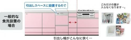 食洗機シンク下設置で水ダレなし!