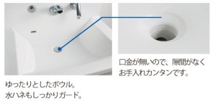 ボウル内の排水口部分にあった口金を無くすことで