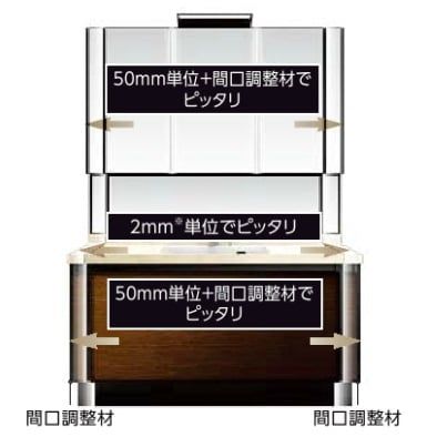 ミラーやキャビネットカウンターまでピッタリサイズのオーダーが可能だから
