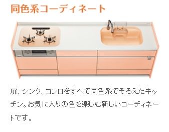 このひろまるコンロをふくめ扉・シンクとのカラーコーディネートが楽しめます
