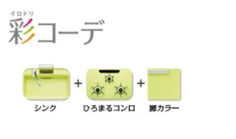 ひろまるコンロ5色、シンク5色、扉は数十色の中から自由に選んでコーディネート♪