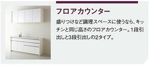ちなみに人気のハイフロアカウンターは、収納したいものによって仕様を選ぶこができます