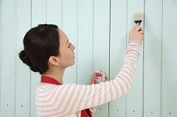 寝室の壁を既存のクリーム色からミントグリーン色へ塗り直し