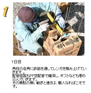 レンガ門柱(角柱タイプ)の施工方法についてご紹介します