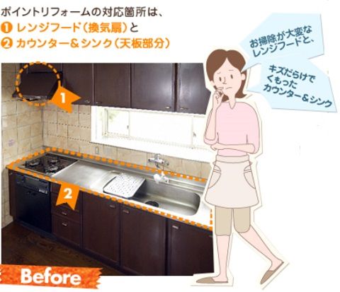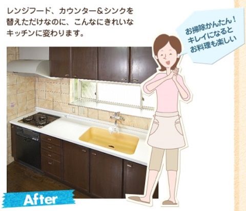 カウンター+シンク+コンロ+レンジフードのみリフォームすると・・