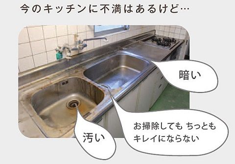 リフォームするなら、キッチン全体を取り替えないといけない。