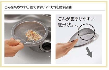 排水口のアミカゴは、ゴミが集めやすい構造なので、パッと捨てやすい♪