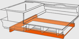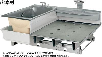 土台に浴室の重さを面全体に分散するフレーム式を採用