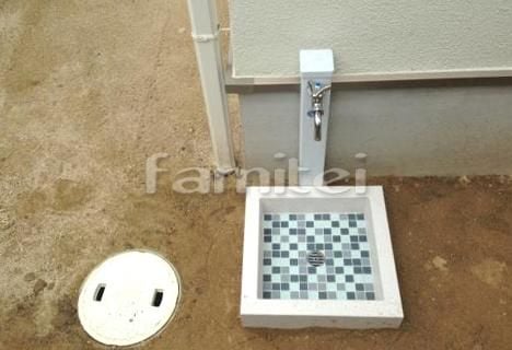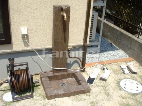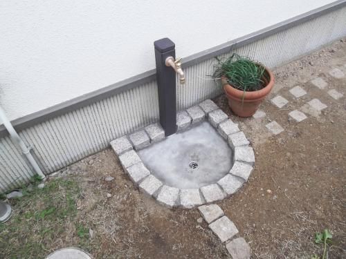 これはシンプルな立水栓ですが、色々なデザインやレンガ調のものもあります
