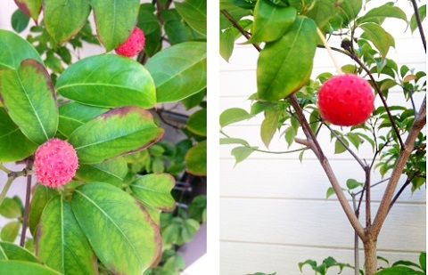 コロコロとした赤い実がまるでクリスマスのオーナメントにも見えるような