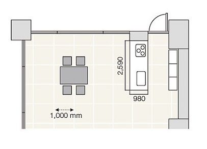 背面収納もしっかり確保し、配膳もしやすい形です。