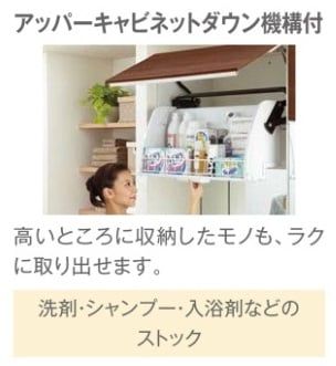 デッドスペースになりがちな上部空間を有効活用して、アッパーキャビネットを設置するもの