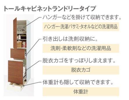 洗面周りの大物収納や脱いだ衣類もスッキリ収納できるから、見た目もキレイ♪