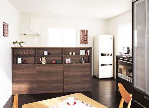 ダイニング側は片面ハイフロアカウンターを採用して