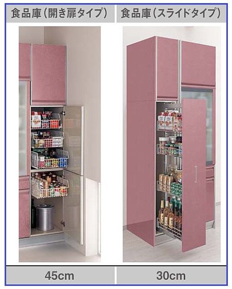 この食品庫なら幅30cmあれば背面収納として配置することができます。