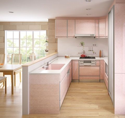 L字で上部に吊戸棚がつけられるので、収納もバッチリ。
