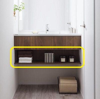 鏡裏の収納スペース以外には基本この黄色く囲った部分のみ