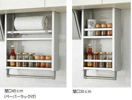 間口30cmと45cmの2サイズあって、45cmサイズはペーパーラックも