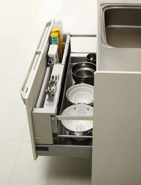キャビネットを引き出すと、手元に浮き上がってくるのですが、包丁を出し入れしやすいように