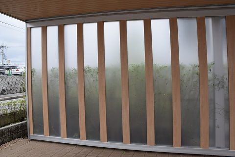 屋根下から見上げると縦のラインがすごくキレイ