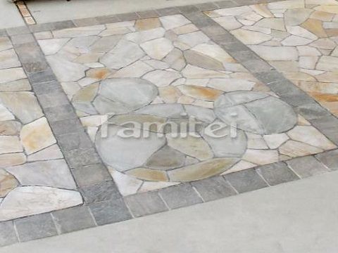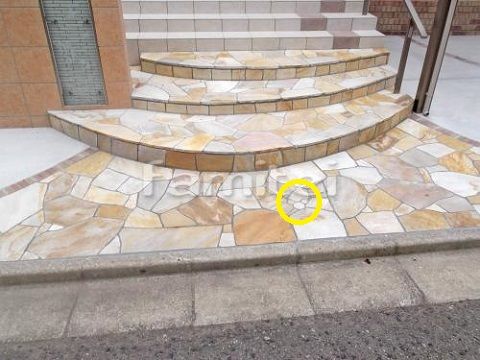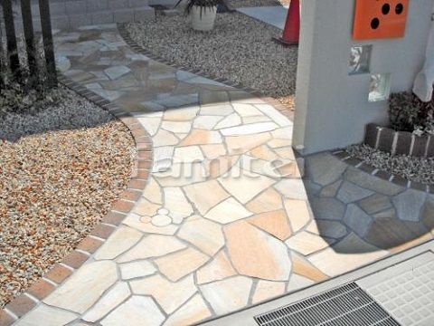 ミッキーの形が浮き上がって見えてくる、乱形石を使用したアプローチです