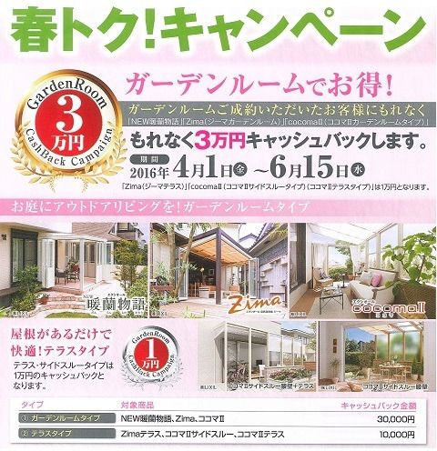 ガーデンルームやおしゃれなテラスをご検討の方は、今がお得です