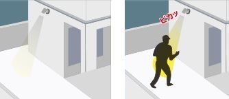 人を検知すると自動的に点灯してくれる「熱線センサ付」の照明が役立ちます