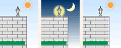 朝になってまわりが明るくなると、自動的に消灯します。